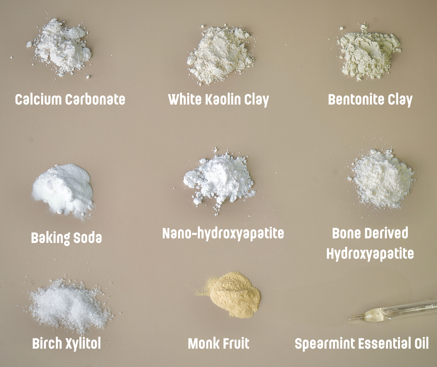 Bentonite Clay: Rich in minerals, helps detoxify and support oral health.